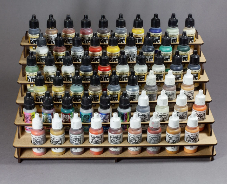 حامل الالوان خاض لفاليخو يحمل اكثر من 50 علبة من خشب mdfلون ابيض وبني